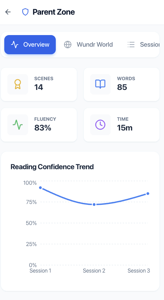 - Children use Wundr to practice reading aloud in short, guided sessions
