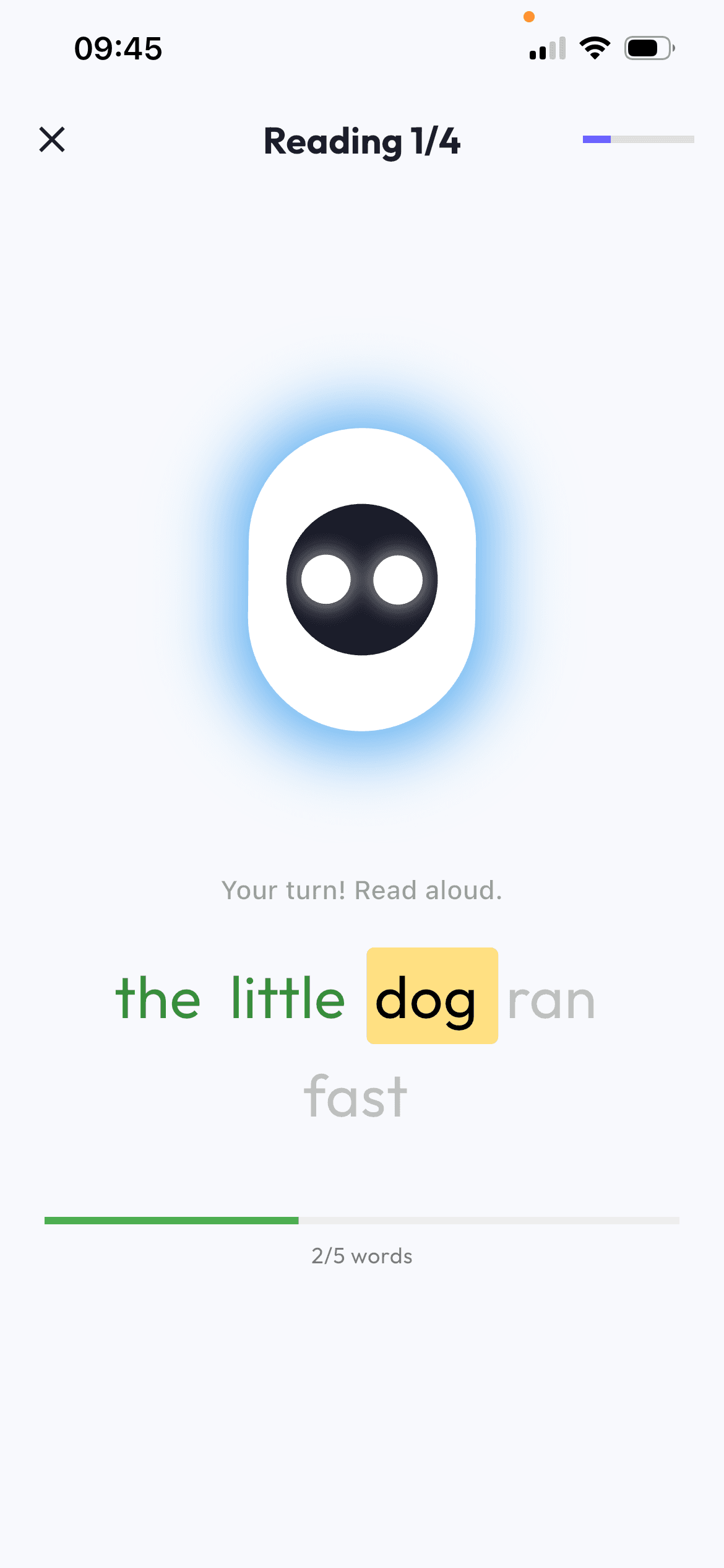 Wundr follows along as children read aloud, helping them stay focused and engaged during short, guided reading sessions.